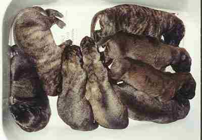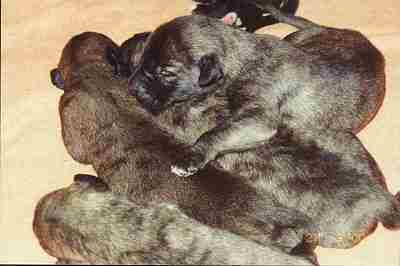 | Wie Sie sehen , haben sich die Welpen ordnungsgemäss und vorschriftsmässig "verdoppelt" - nicht mengen- sondern gewichtsmässig. Die nächsten Bilder werde ich dann veröffentlichen, wenn die Sicht der Dinge beidseitig ist - d.h., wenn nicht nur "sehen", sondern auch "gesehen werden" auf dem Programm steht - also, wenn die Welpen die Augen geöffnet haben (und ich gestehe : dann beginnt die Zeit, die ich für mich persönlich als am schönsten empfinde. Die gezielte Augen-Kontaktaufnahme, das Auf-einen-zuwackeln eines Welpen - d a s ist es, was für mich der Anreiz ist, es (trotz allem) noch einmal zu tun ;-)) |